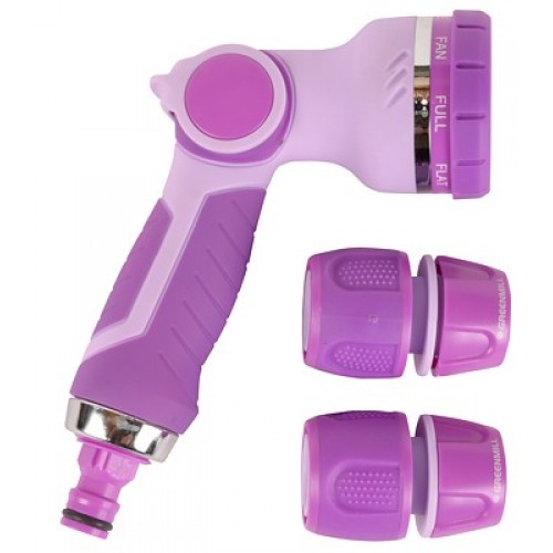 Setați udarea de 1/2 "cu un pistol 8 funcții Greenmill LADY; - Opțiuni: pistol cu 8 poziții, conector 1/2", conector 1/2 "cu cârlig. Cap cu tampon antiderapant.