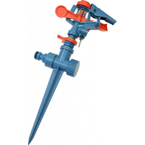 Stropitor cu impulsuri, pe o spire. Pentru irigarea suprafețelor mari și mijlocii, pe o rază de până la 11 m, max. suprafață de irigație 380 m2. Gama de udare reglabilă și unghiul de la 30 la 300o, sau udare într-un cerc de 3600. Posibilitatea de a conecta mai multe stropitoare la rând, folosind un furtun și conectori AJT16 și blister АЈT16C (3/4 ")